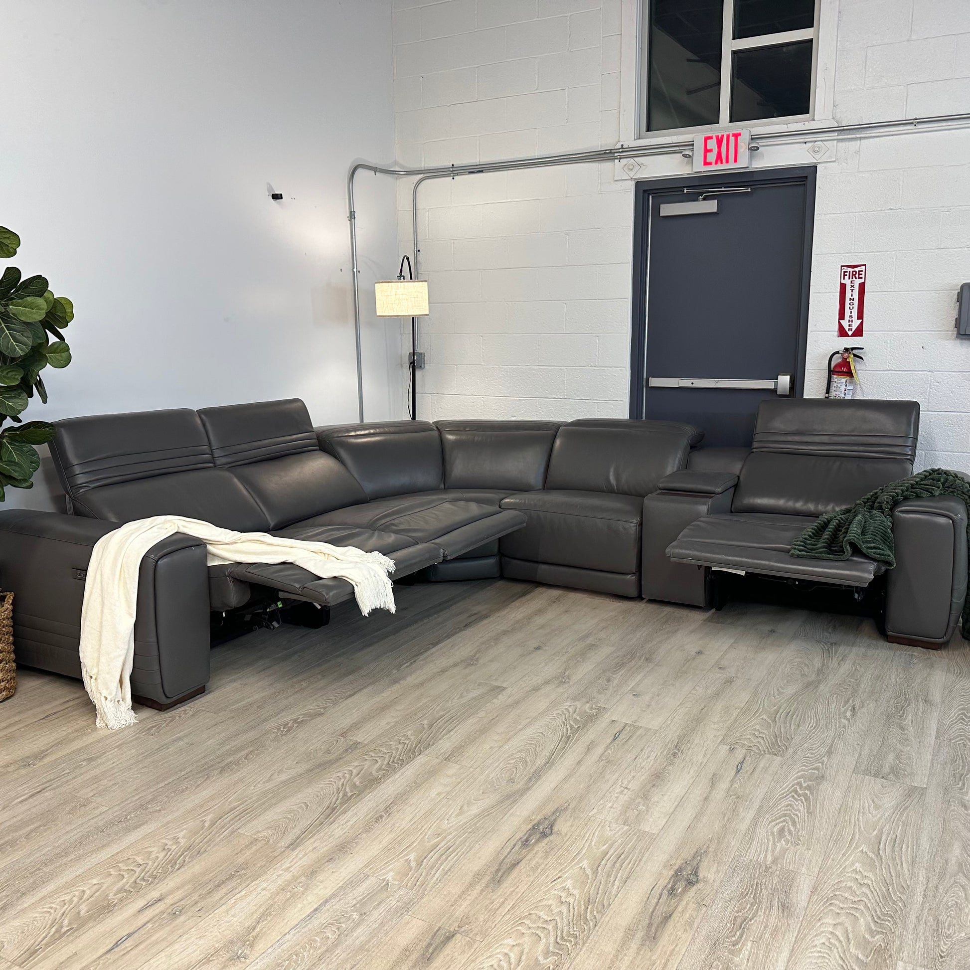 Karson Leather Power Reclining Sectional with Power Headrests